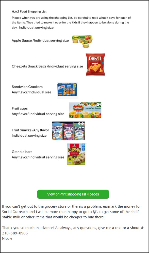 The original snack sign-up sheet is located on the window sill behind the beverage table.